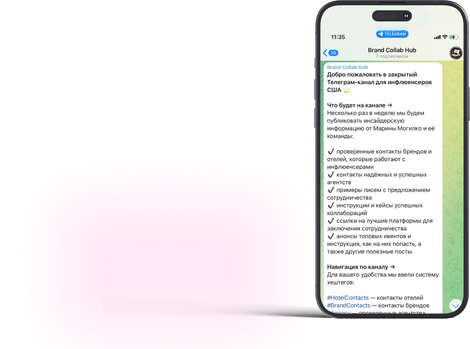 В нашем закрытом Телеграм-канале с ежемесячной подпиской вы найдёте инсайдерскую информацию: контакты, примеры писем, инструкции, подробные кейсы, опыт работы Марины Могилко с брендами — всё, что поможет вам выйти на рекламные коллаборации с мировыми брендами и вырастить медийность.
